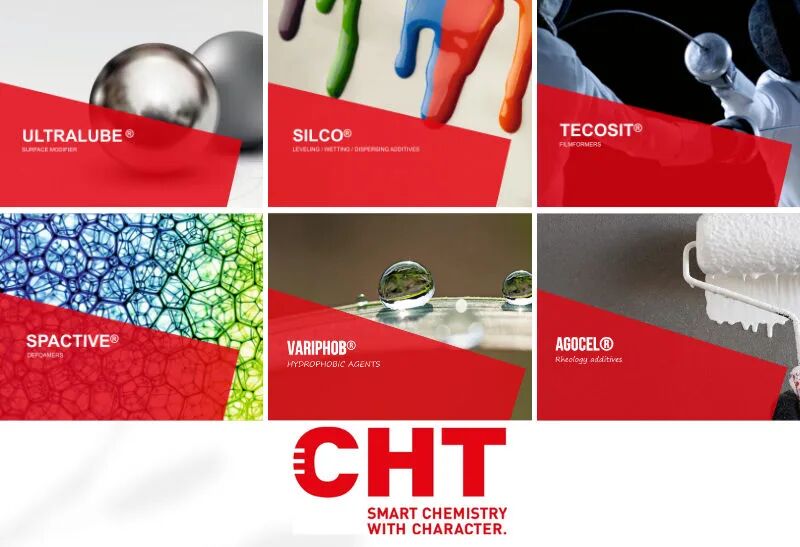 CHT集團(tuán)總部位于德國,是一家特殊化學(xué)品研發(fā)、生產(chǎn)、銷售的跨國化學(xué)品公司,為油漆和涂料行業(yè)提供一系列性能優(yōu)異的添加劑。自行研發(fā)生產(chǎn)包括消泡劑、防水劑、流變改善劑、流平劑和潤濕劑在內(nèi)的高性能添加劑,促使油漆涂料行業(yè)從溶劑型向水性系統(tǒng)更輕松進(jìn)行改變。