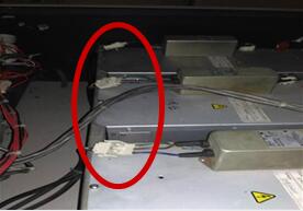 1、 首先出現(xiàn)這個(gè)故障后,如果還出現(xiàn)M2 LAMP DOOR IS OPEN的故障信息,那我們就跳到第4步;如果沒有,我們應(yīng)該先檢查燈盒的連接線是否已經(jīng)接好(如右圖1所示),整流器的電源線是否接好(如下圖2所示)