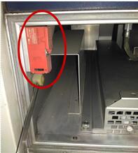 4、 此時(shí),那就可能是燈盒門的門鎖開關(guān)導(dǎo)致故障出現(xiàn),此時(shí)我們打開燈盒門,然后可以看到在左側(cè)有一個(gè)紅色的模塊,那就是門鎖開關(guān),我們可以擰松門鎖開關(guān)下面的四顆螺絲,直到M2報(bào)警信息消除,這樣我們就可以讓門鎖開關(guān)失效,進(jìn)行下一步測(cè)試,但如果M2沒法消除,則表明門鎖開關(guān)有可能損壞,需要更換。