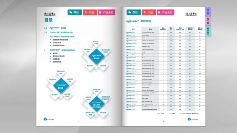 Ceronas GmbH & Co.KG 是一家生產(chǎn)微粉蠟添加劑的生產(chǎn)商和開發(fā)商,旗下品牌 mju:wax® 銷售微粉蠟、氧化的 VISCOCER® 蠟和聚合物,以及創(chuàng)新的添加劑,如離子聚合物、改性聚酯蠟和功能化的ADDIMER® 蠟混合物。Ceronas 的添加劑廣泛應用于涂料、粉末涂料、油墨、清漆、塑料、母料、脫模劑、潤滑劑、蠟乳液、蠟分散體等多個工業(yè)領域。